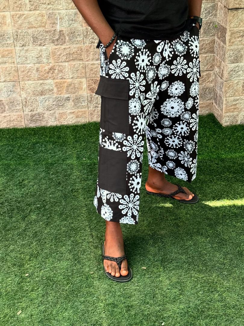 Elevate your wardrobe with the Afrigidi Moyin Combat Pant, crafted from vibrant African print fabric for a unique and stylish look. These comfortable trousers provide a true-to-size fit, perfect for casual and traditional wear.