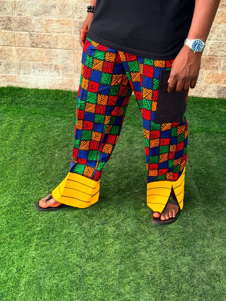 Step into confidence and culture with the Afrokente Jiraya Combat Pants – a bold fusion of Afrocentric prints and streetwear edge. Made from breathable, high-quality fabric, these pants feature a tailored-yet-relaxed fit with multiple pockets and Ankara patch detailing that brings the heat.