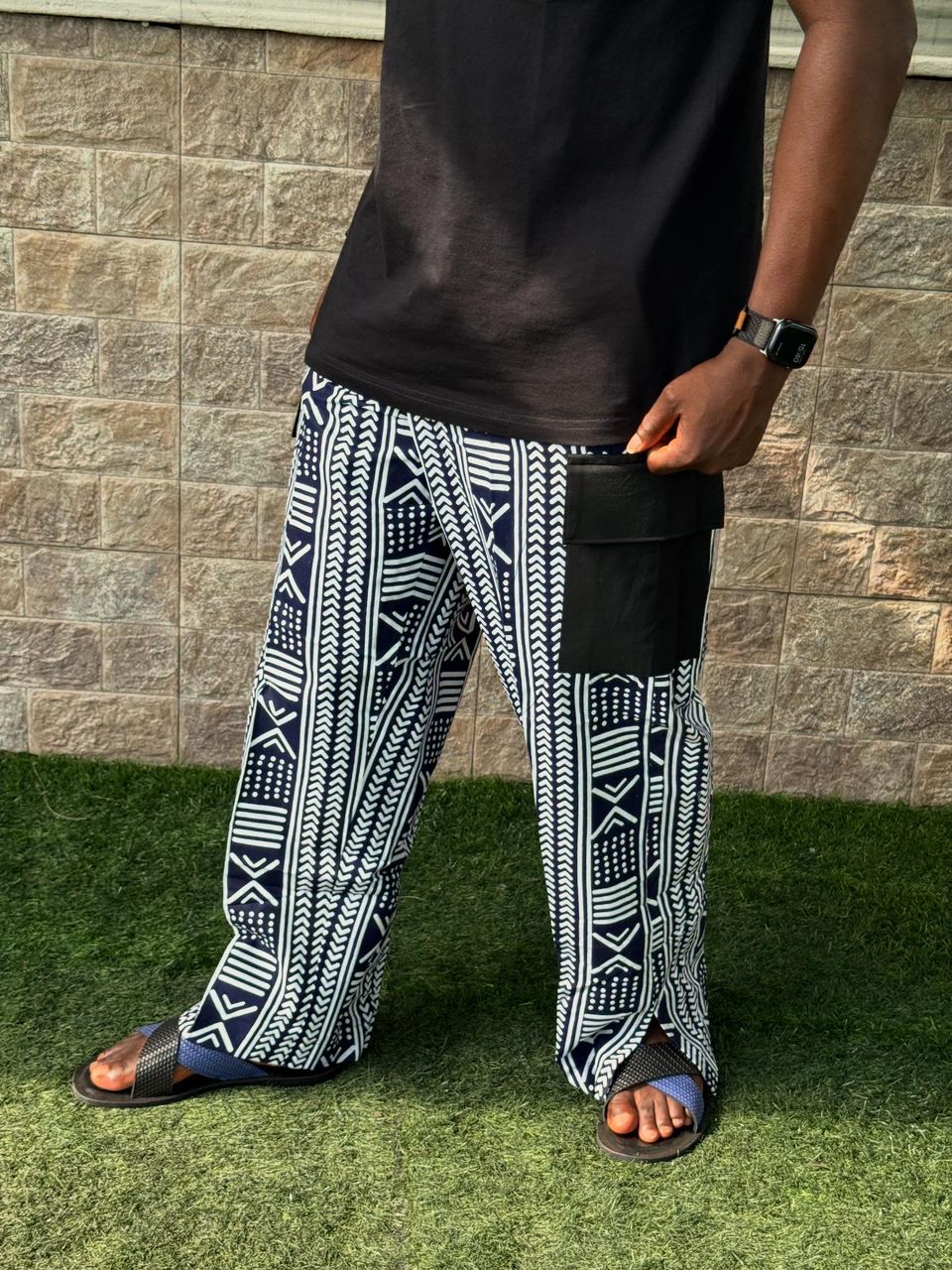 Step into strength and style with the Afrokente Tribal Blue Combat — a bold expression of African heritage and modern craftsmanship. Designed with authentic Afrokente fabric, this pant celebrates tradition through its deep black tone and unique tribal-inspired detailing.